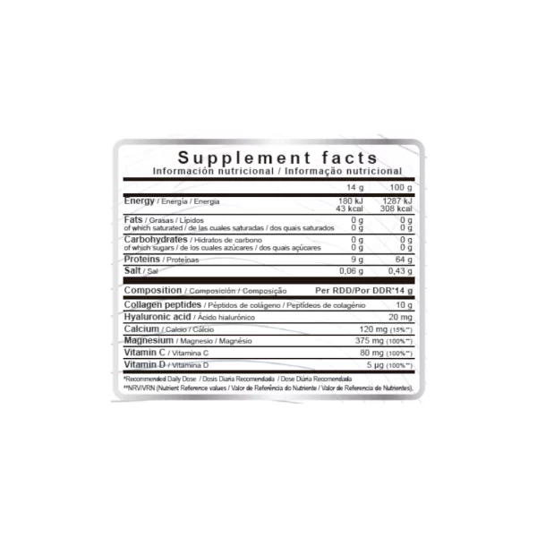 ✅ Collagène avec vitamines C et D : La vitamine C protège contre le stress oxydatif et aide à la formation du collagène présent dans les os, la peau et les articulations. La vitamine D contribue au maintien du système osseux et musculaire.