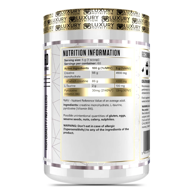 Conserver Luxury Nutrition Creatine dans un endroit frais et sec, à l’abri de la lumière directe du soleil.