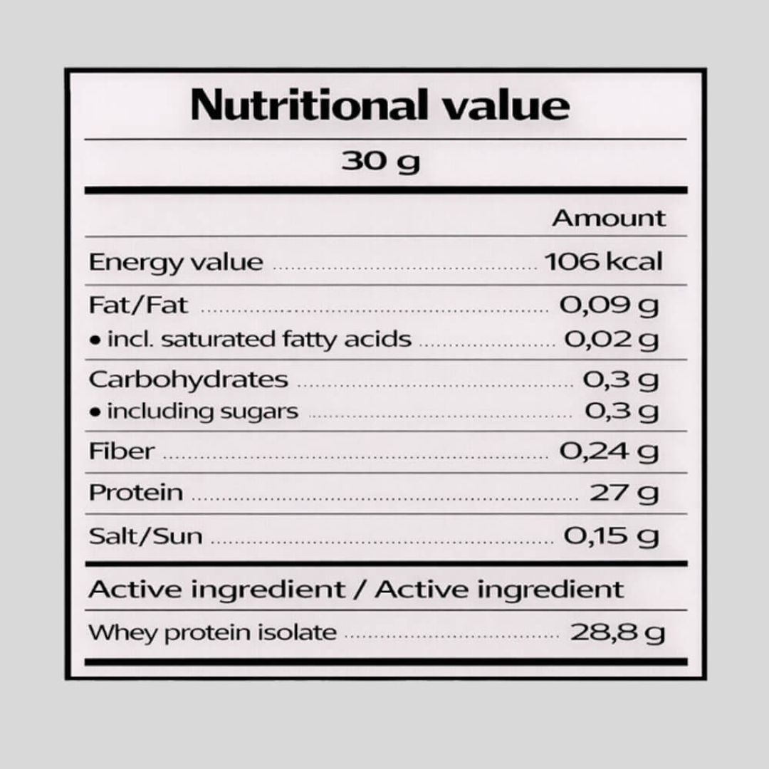 Mélanger 1 dose (~30 g) avec 200 à 300 ml d’eau ou de lait écrémé. Consommer jusqu’à 3 doses par jour selon vos besoins en protéines. Ne pas dépasser la dose journalière recommandée.